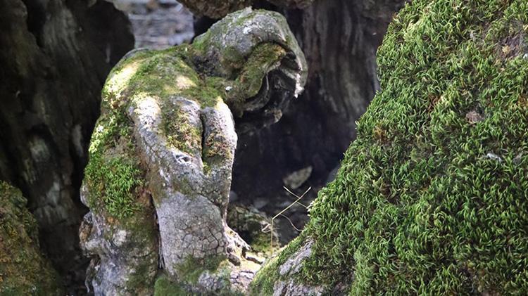 Devasa dut ağacının gövdesinde yıllar içinde oluşan derin yarıklar yere oturmuş ve başını eğmiş bir insan figürünü andırıyor. Bu görüntü, mahallelinin yanı sıra bölgeyi ziyaret eden doğa tutkunlarının da ilgisini çekiyor.