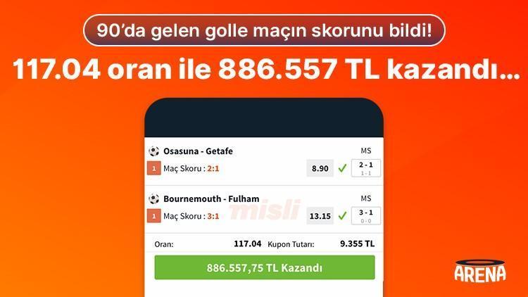 La Liga'da ise son 3 maçını da kazanamayan Osasuna ve Getafe ligin 8. haftasında karşı karşıya geldi. İlk 20 dakikası temposuz geçen karşılaşmada 23. dakikada Getafe'nin tecrübeli orta saha oyuncusu Luis Milla'nın ceza sahasına yaptığı tehlikeli ortada skoru 0-1’e taşıyan isim Borja Mayoral oldu. 42. dakikada duran top şansı yakalayan Osasuna'da ceza sahasına yapılan etkili ortada penaltı bekleyen Ante Budimir'in itirazı VAR incelemesi sonrası geçersiz sayıldı. Hayal kırıklığı yaşayan Osasuna’ya devre arasına girmeden umut olan gol, 45+3. dakikada ceza sahası çevresinden attığı şık şutla skoru 1-1’e getiren Abel Bretones’ten geldi. İkinci yarısı düşük tempoda geçen karşılaşmada 8.90 oranlı 2-1 skor oynayan Misli üyesi için süre azalırken 90. dakikada sahneye çıkan isim Alejandro Catena oldu. Ruben Garcia’nın kullandığı kornerde topu filelerle buluşturan Catena, takımına 3 puanı getirdi. Bu gol, Misli üyesinin 2 maçlık, toplam 117.04 oranlı kuponunu kazandırdı ve tam 886.557 TL kazanç sağladı.