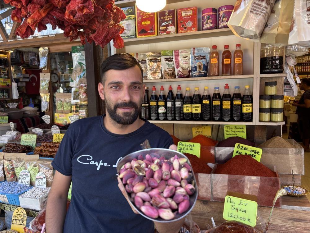 Rekoltenin düşük olması sebebiyle fiyatlarda yükseliş yaşandığını söyleyen esnaf Engin Korkmaz, "Geçen hafta Antep fıstığı hasadı yapıldı. Bu yıl ürün az olduğu için fiyatlar oldukça yüksek. Öyle ki kilo fiyatı 500-550 lira civarında olduğu için pek çok kişi alamıyor. Hasadın yeni başladığı dönemde fiyatlar daha yüksek oluyor. Biz geçen hafta 650 liradan satarken, önce 550 liraya, bugün ise 500 liraya düştü. Fiyat en fazla 450 liraya kadar gerileyebilir. Ağaçlar bu yıl oldukça yorgun. Bunun sebebi, dalda fazla kırım yapılması. Dallar kırıldığında ağaç daha fazla yoruluyor ve dinlenmeye ihtiyaç duyuyor. Bazı ağaçlar ürün verirken, bazıları vermiyor. Bu yıl verim çok düşük. Örneğin, normalde 5 çuval veren bir ağaç, bu sene ancak 2 çuval ürün verdi. Şu anda fıstık hala yeşil, tam kızarması için yaklaşık bir aya daha ihtiyaç var. Normal şartlarda Antep fıstığının önümüzdeki iki ay içinde çıkması beklenirdi, ancak aşırı sıcaklar nedeniyle hasat öne çekildi" dedi.