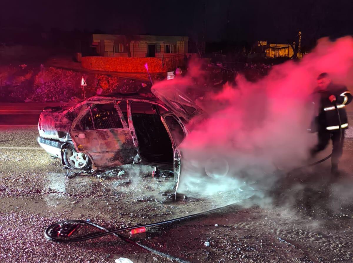 Mustafa ÖNDOĞAN/BESNİ (Adıyaman), (DHA)- ADIYAMAN'ın Besni ilçesinde, hareket halindeyken alev alan otomobil yandı.