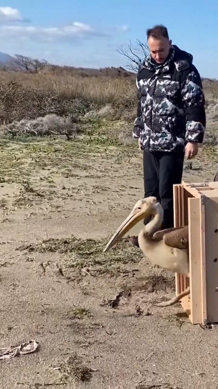 Yaralı ak pelikan 5 aylık tedavisinin ardından doğaya salındı