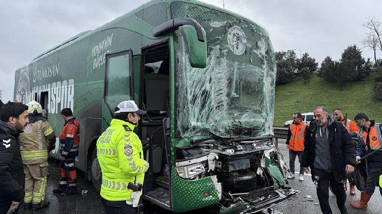 Konyaspor U-19 Takımı’nı taşıyan kulüp otobüsü, İstanbul TEM Otoyolu Samandıra Kavşağı’nda bir kamyona arkadan çarptı.